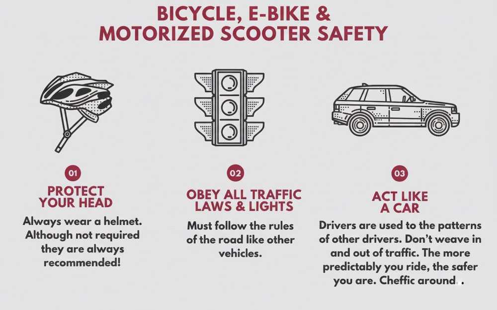 Safety experts urge parents to talk with their children about rules of the road, personal responsibility, and the importance of following traffic laws. Under Texas law, all riders on public roads must obey the same traffic regulations as other vehicles, including signaling turns and observing posted speed limits.